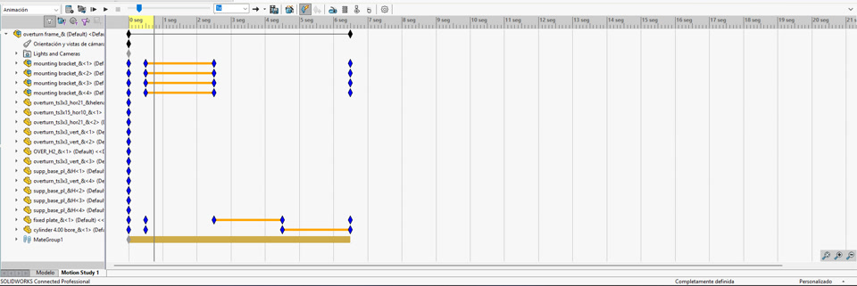 Ahora vamos a crear nuestra animación. En este ejemplo, realizaré un explosionado de los componentes del ensamblaje. Para que este proceso se lleve a cabo, debes tener en cuenta que debe existir una vista explosionada del modelo.