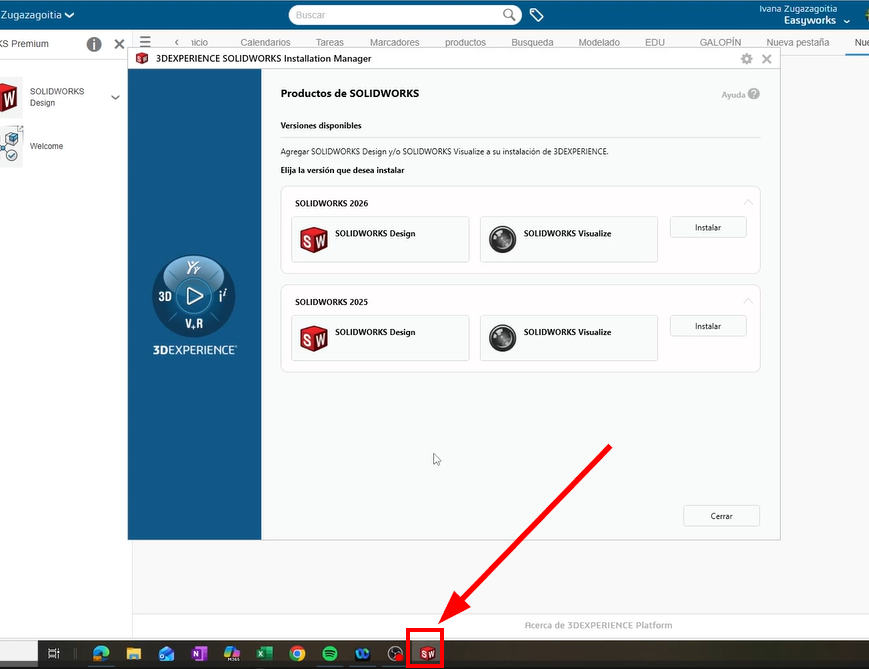 Si instalas múltiples versiones de las aplicaciones de SOLIDWORKS, inicia el 3DEXPERIENCE SOLIDWORKS Installation Manager para declarar qué versión se iniciará por defecto desde la plataforma (encima justo d «modifica». Además, para un mayor control, puedes crear un acceso directo específico por versión.