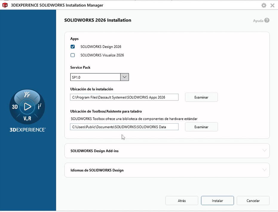 Asistente de instalación para SOLIDWORKS Design en 3DEXPERIENCE