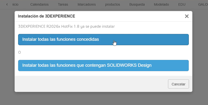 - Las actualizaciones de SOLIDWORKS se descargan e instalan junto con los componentes de la plataforma 3DEXPERIENCE