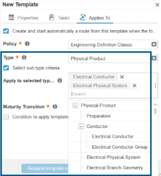 Ya os hemos hablado de las rutas de aprobación. Si las usas, ahora vas a notar una mayor agilidad. Desde ahora, tendrás la posibilidad de crear una plantilla de ruta que aplique a un tipo de objeto en concreto; por ejemplo, a partir de ahora podremos crear una plantilla de ruta que aplique a todos los archivos de tipo ‘drawing’ almacenados en 3DEXPERIENCE.