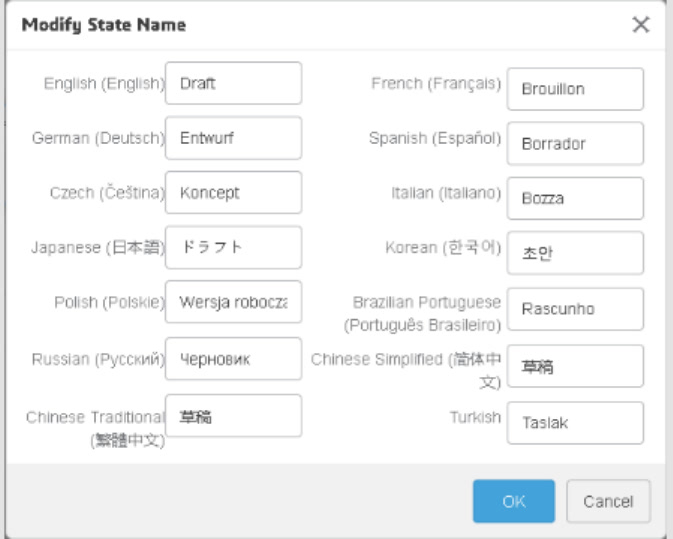 Si el estado de madurez no se modifica por el usuario, se mantiene el valor por defecto y se traduce automáticamente al idioma correspondiente. En cambio, si el nombre de cambia, el valor personalizado se conserva para todos los idiomas hasta que se modifique de nuevo.